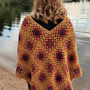 Virkattu poncho sateenkaaren väreissä. Novita Seitsemän veljestä-lanka.