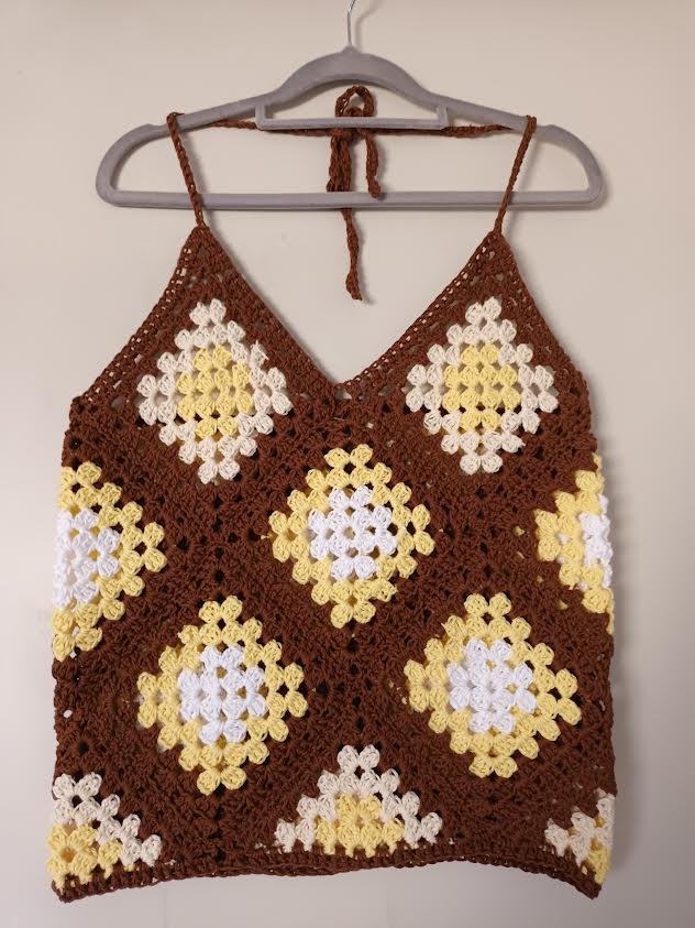 Virkattu toppi Novitan Cotton Soft-langasta 100% puuvilla.